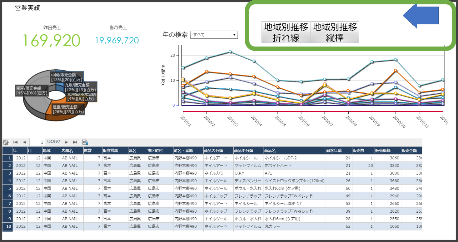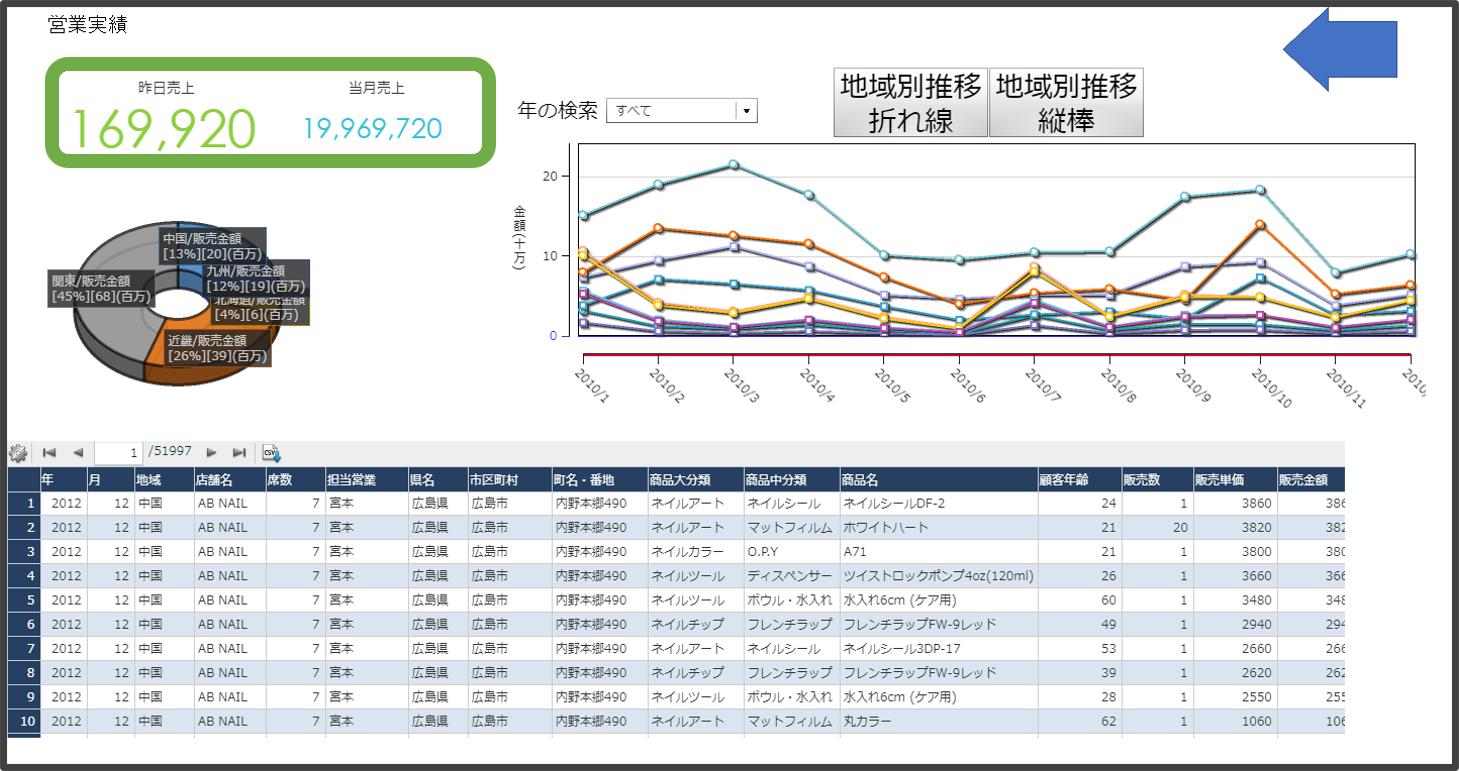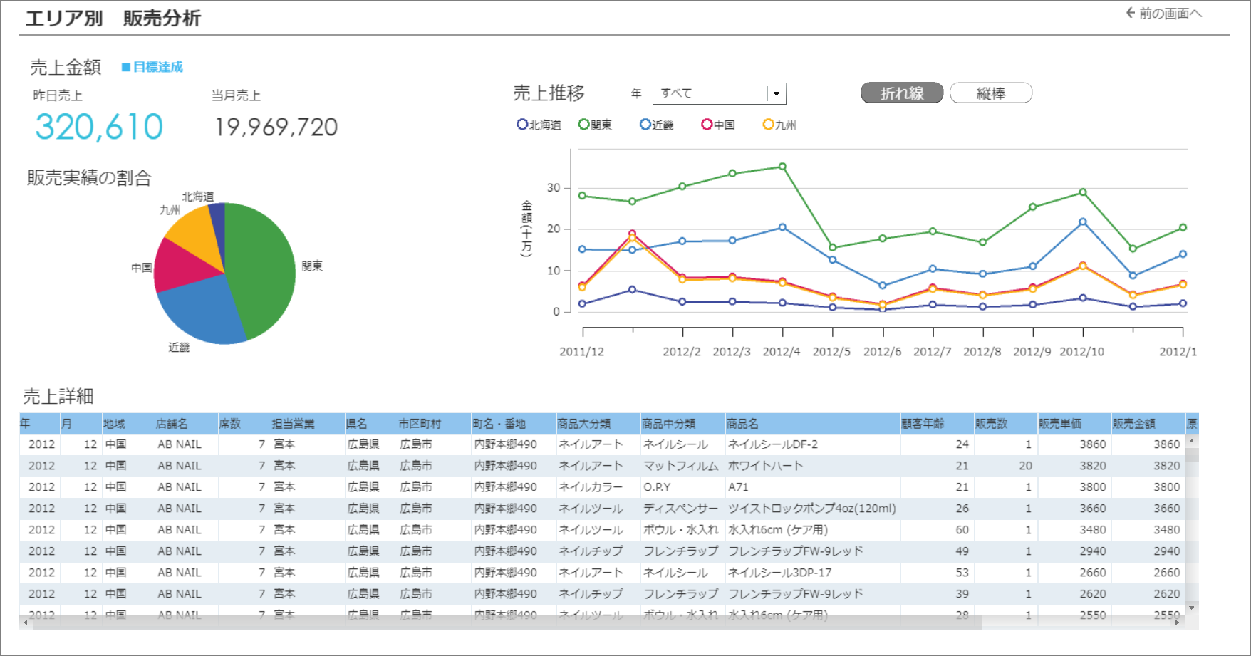 この可視化画面は営業実績を把握し、課題を発見するための画面です。