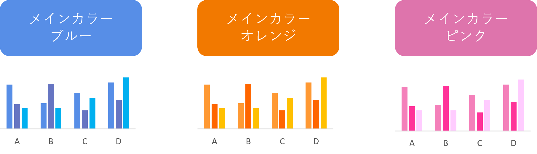 色を決める時はグラフや表など各アイテムごとに考えるのではなく、画面全体のイメージから検討します。