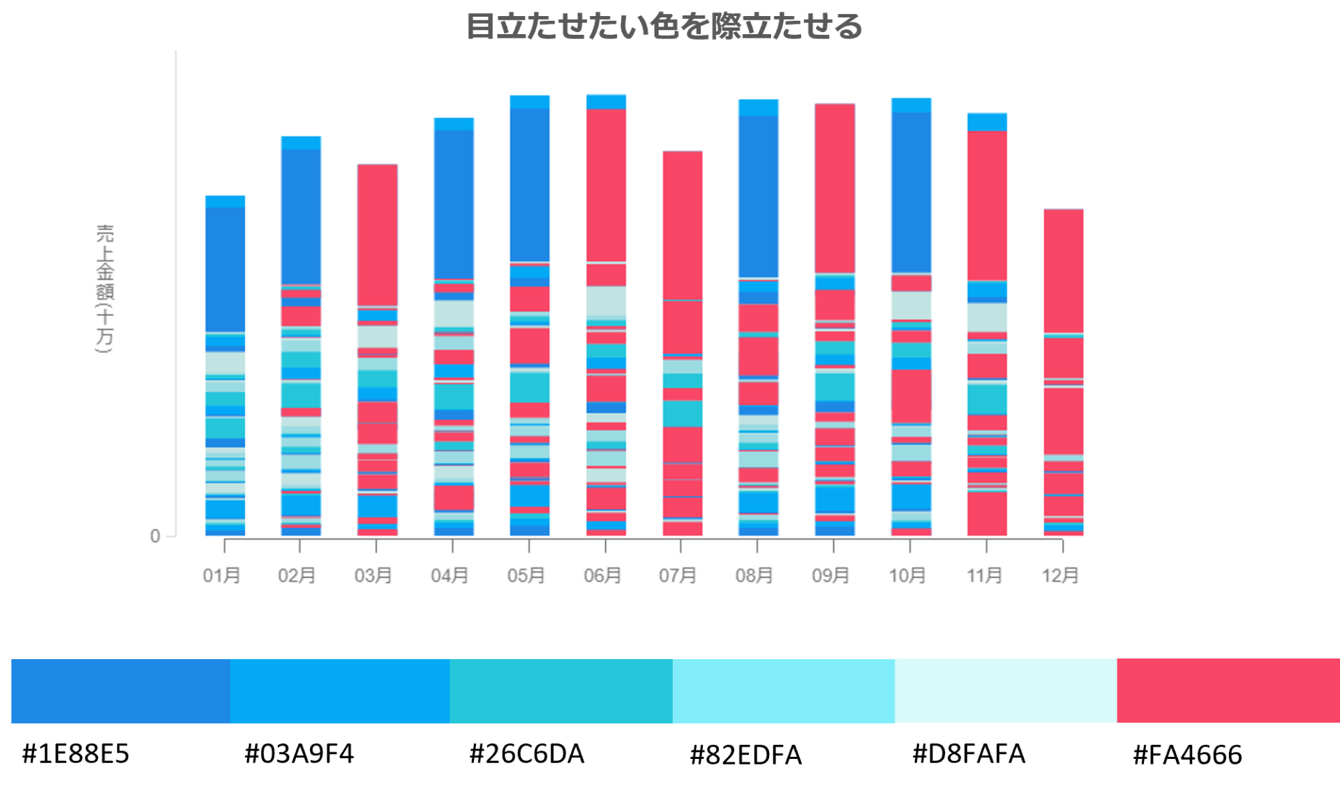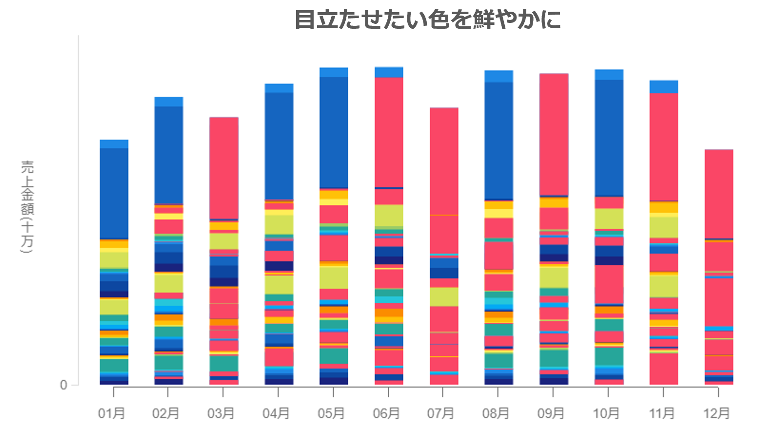 グラフは、どういった情報を届けたいかによって表現が変わります。それは配色にも同じことが言えます。