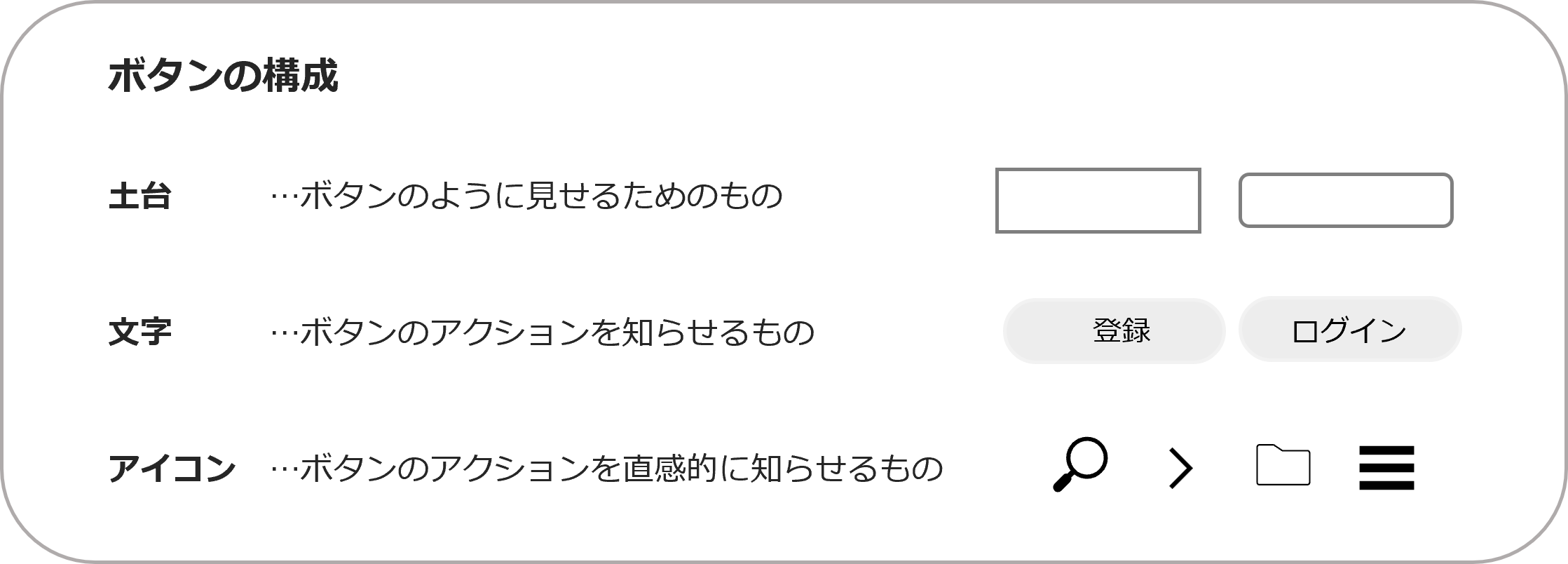 ボタンは3つの要素のいずれかを用いて構成されていることが多いです。