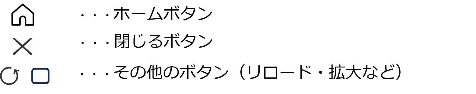 例えば、ホーム画面に戻る為のホームボタンや、ポップアップを閉じるボタン、リロードや拡大ボタン、ヘルプ情報を表示するボタンなどは文字を添えなくても理解しやすいです。