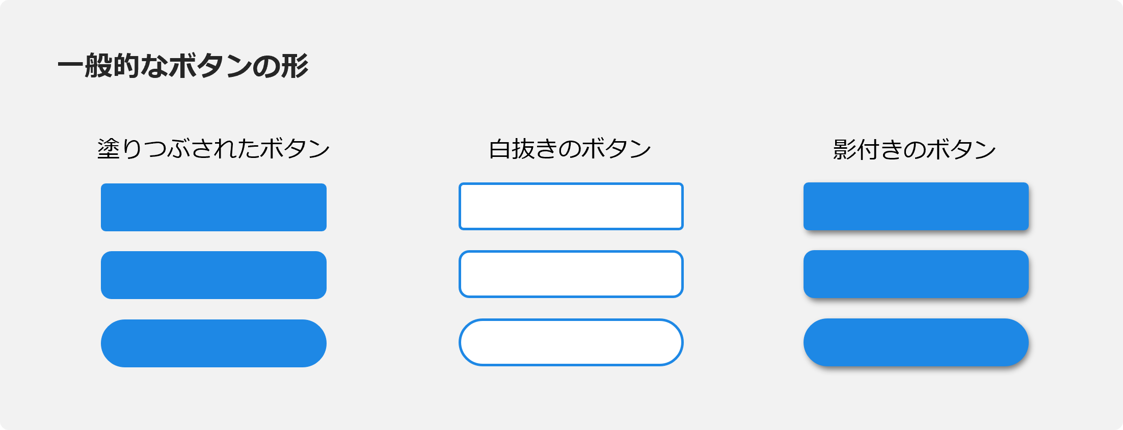 このように、各ボタンの役割や利用場面によってボタンの形状やデザインも変わります。