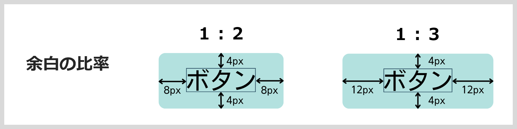 また、ボタン内の余白サイズはベースとされているサイズが比率で決まっています。