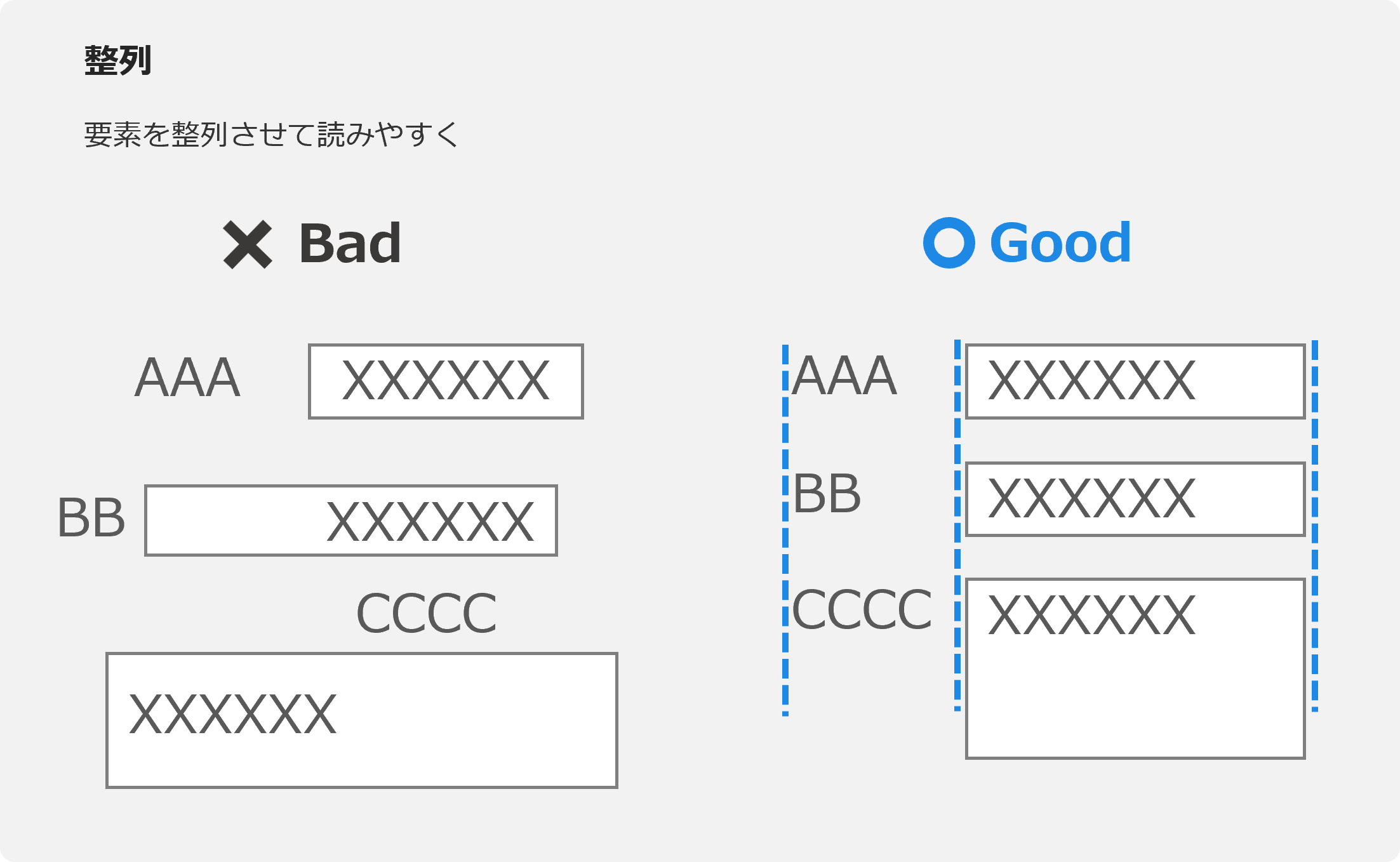 「わかりづらい」「使いづらい」と思ってしまう原因はこの『近接・整列・反復』の視線誘導が関係していることも多いです。