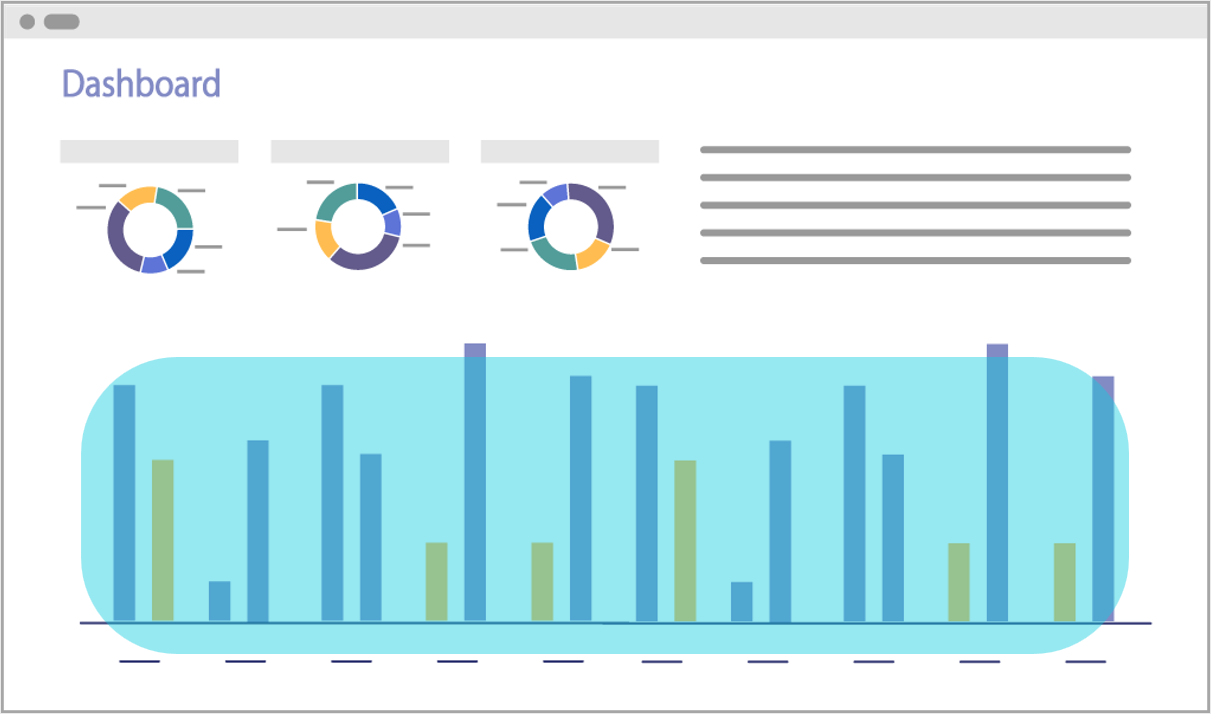 例えば、下の画面のようなデザインだと、まず下部に配置された縦棒グラフに人は視線を向ける可能性が高くなります。