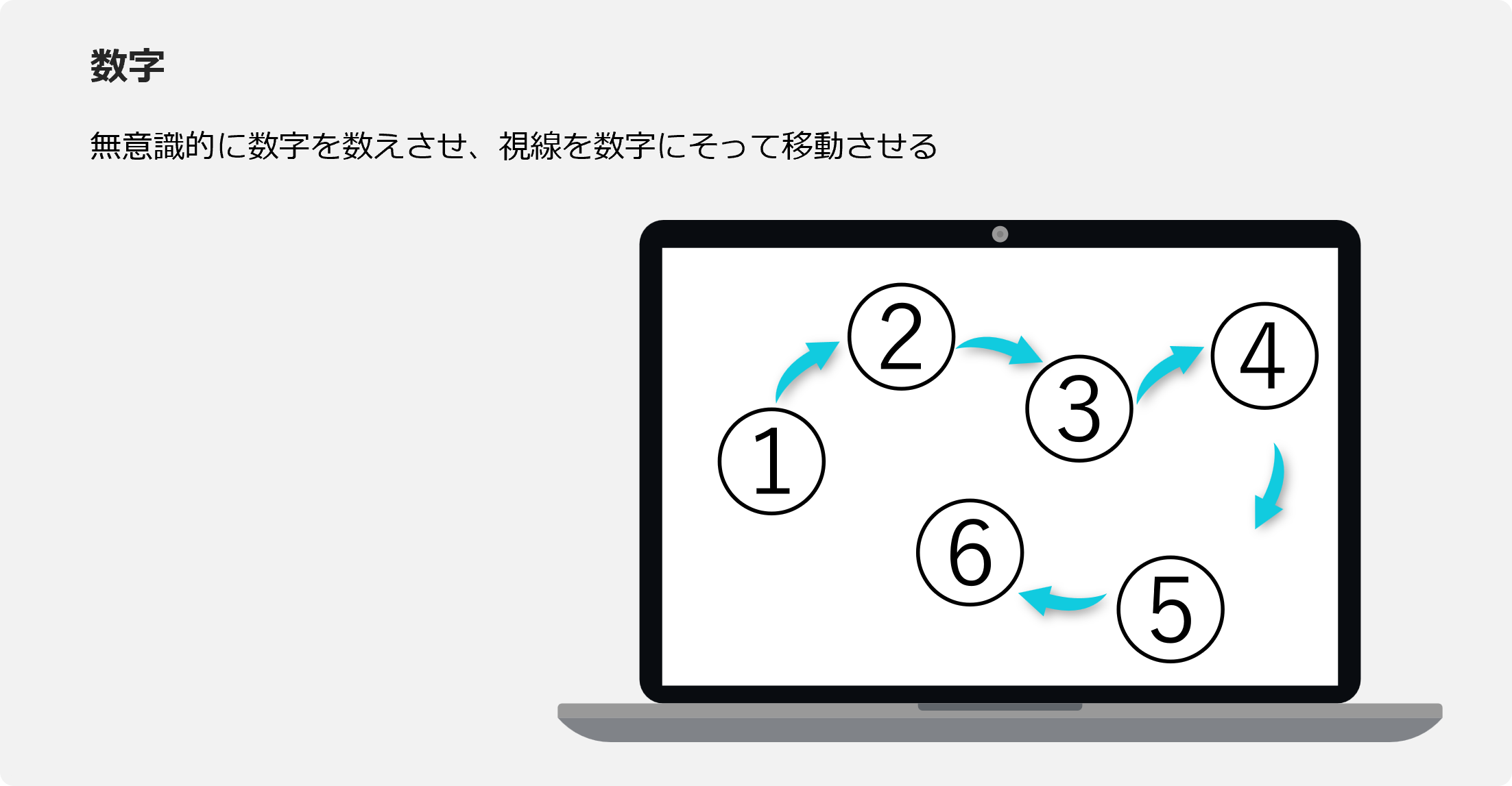 視線誘導とは、ユーザーの視線の流れを意図的にコントロールし、意図した順番で見てもらうための手法です。